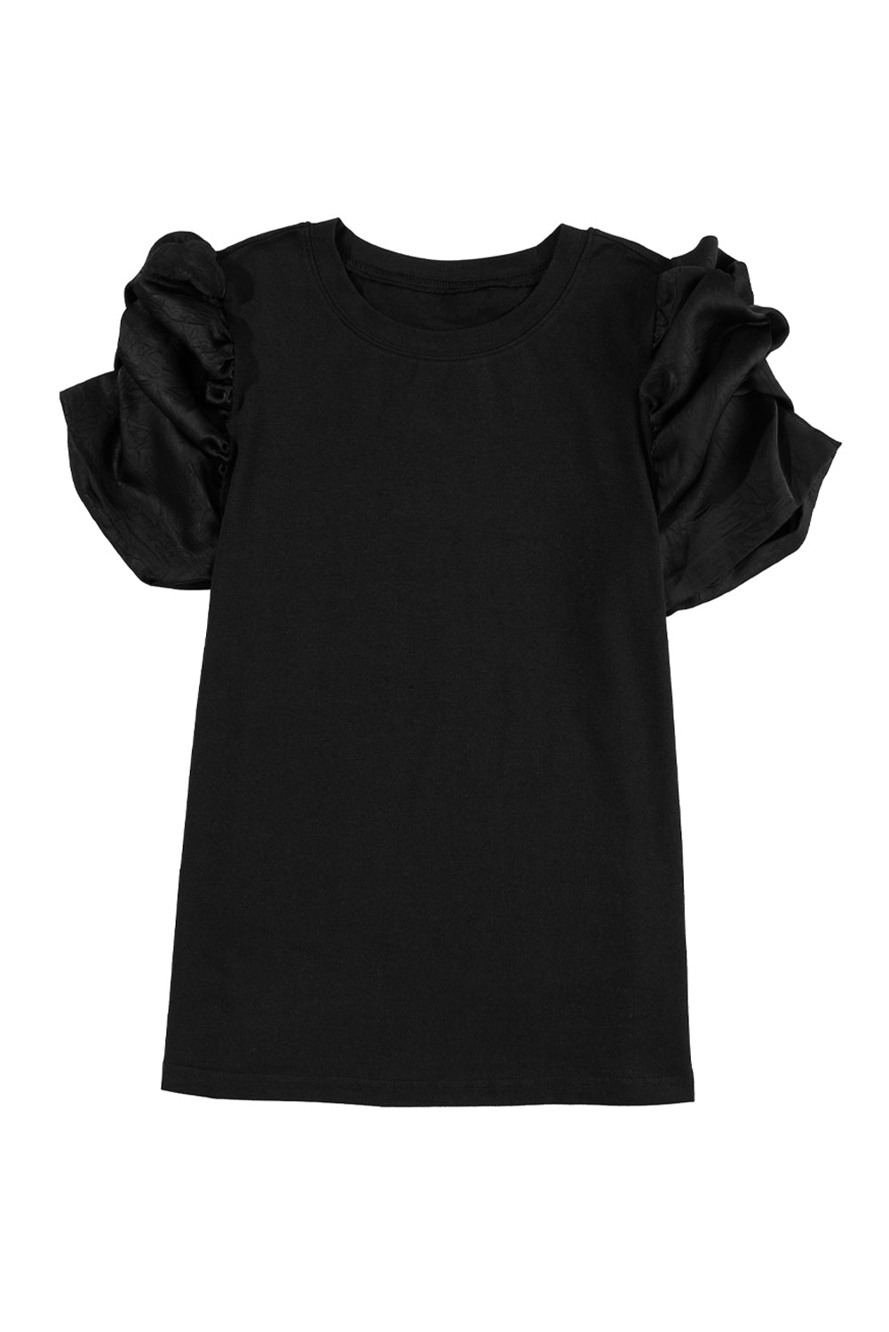 Black Ruched Puff Sleeve Solid Color Blouse